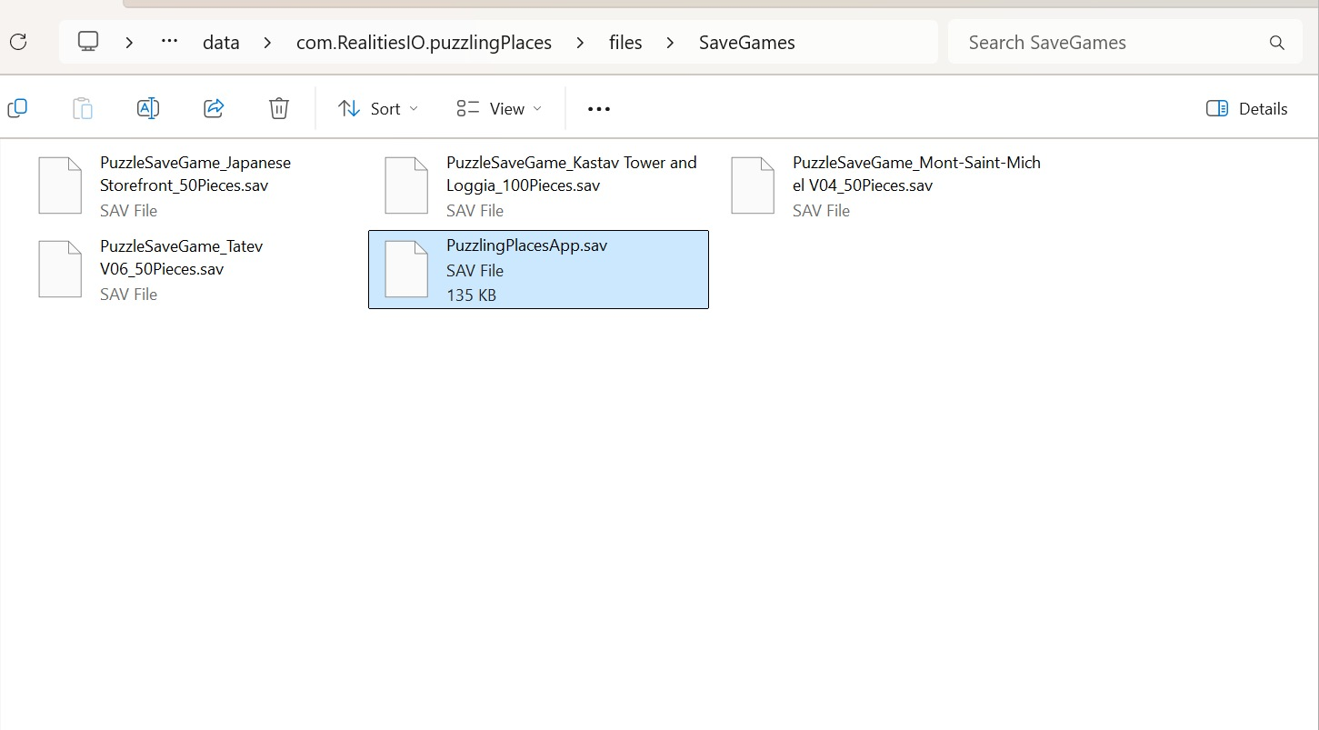 and copy the PuzzlingPlacesApp.sav file to your pc